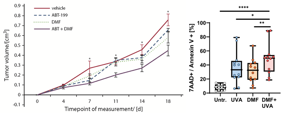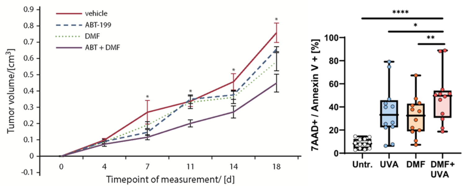 We aim to develop novel targeted combination therapies that improve both efficacy and tolerability in CTCL. In this context, we have demonstrated synergistic effects when combining DMF with Bcl-2 inhibition using venetoclax (Fröhlich et al., Blood, 2019), as well as with extracorporeal photopheresis (ECP) (Sener*, Melchers* et al., Leukemia, 2024). A clinical trial evaluating the DMF/venetoclax combination is currently in preparation. As an initial step toward clinical translation, six patients have already been treated with the DMF/ECP combination, achieving an overall response rate of 100%.