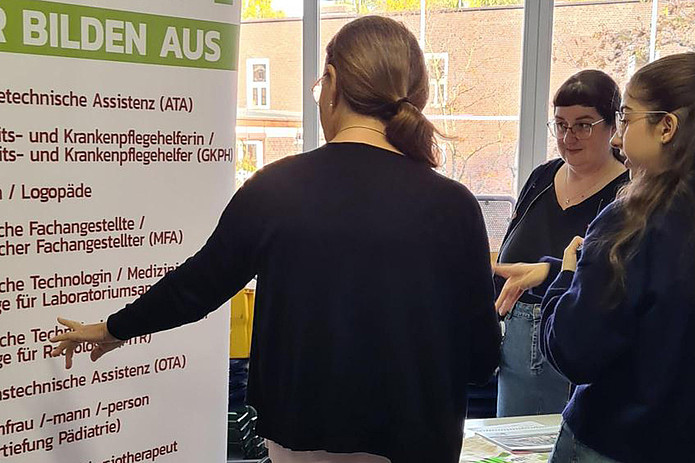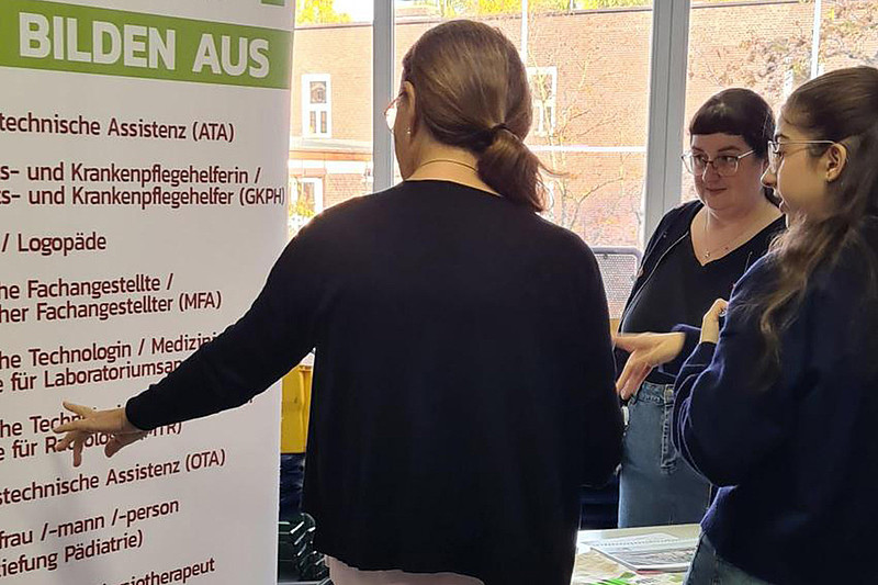 Vor Ort informierten Vertreterinnen unter anderem über die Berufsfachschule für Pflege sowie die Berufsfachschulen für Medizinische Technologinnen und Technologen für Laboratoriumsdiagnostik (MTL) und Radiologie (MTR) und die OTA/ATA-Schule.