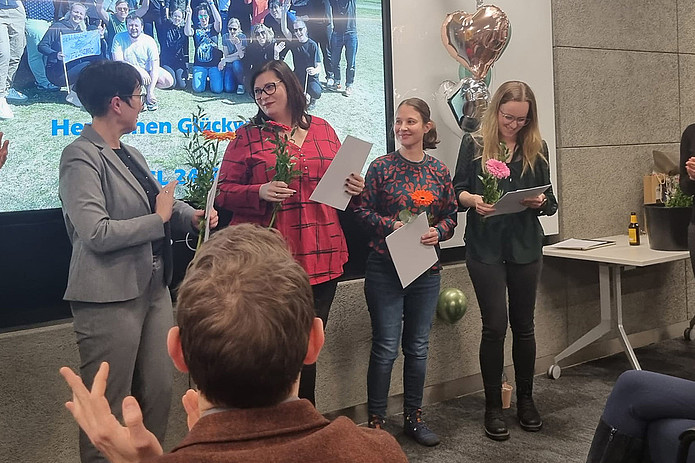 Insgesamt 21 Teilnehmende schlossen die Weiterbildung erfolgreich ab. Vier Absolventinnen erfüllten die Anforderungen in ganz besonderer Weise und erzielten die Bestbewertung von 1,0: Carmen Baumgärtner, Vanessa Seib und Dalia Moraw von der UMM sowie Elina Schuster von der BG LU.
