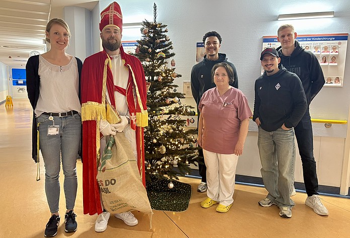 Alle Jahre wieder sorgt ein besonderer Besuch für leuchtende Augen in der Kinderchirurgie der Universitätsmedizin Mannheim: Der Nikolaus und Spieler des SV Waldhof Mannheim kamen auch in diesem Jahr vorbei, um den kleinen Patientinnen und Patienten eine vorweihnachtliche Freude zu bereiten.