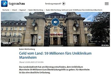 tagesschau.de: 59 Millionen fürs Uniklinikum Mannheim