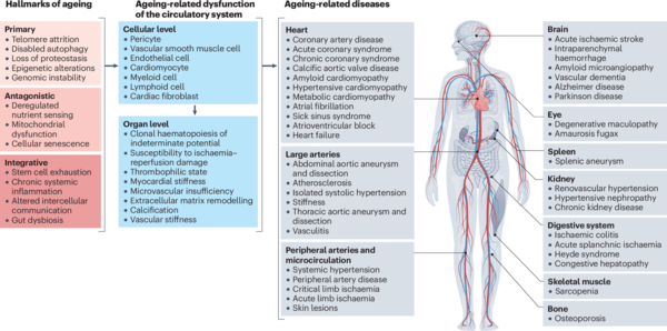 1: Liberale L, Tual-Chalot S, Sedej S, Ministrini S, Georgiopoulos G, Grunewald M, Bäck M, Bochaton-Piallat ML, Boon RA, Ramos GC, de Winther MPJ, Drosatos K, Evans PC, Ferguson JF, Forslund-Startceva SK, Goettsch C, Giacca M, Haendeler J, Kallikourdis M, Ketelhuth DFJ, Koenen RR, Lacolley P, Lutgens E, Maffia P, Miwa S, Monaco C, Montecucco F, Norata GD, Osto E, Richardson GD, Riksen NP, Soehnlein O, Spyridopoulos I, Van Linthout S, Vilahur G, Wentzel JJ, Andrés V, Badimon L, Benetos A, Binder CJ, Brandes RP, Crea F, Furman D, Gorbunova V, Guzik TJ, Hill JA, Lüscher TF, Mittelbrunn M, Nencioni A, Netea MG, Passos JF, Stamatelopoulos KS, Tavernarakis N, Ungvari Z, Wu JC, Kirkland JL, Camici GG, Dimmeler S, Kroemer G, Abdellatif M, Stellos K. Roadmap for alleviating the manifestations of ageing in the cardiovascular system. Nat Rev Cardiol. 2025 Aug;22(8):577-605. doi: 10.1038/s41569-025-01130-5. Epub 2025 Feb 19. PMID: 39972009.