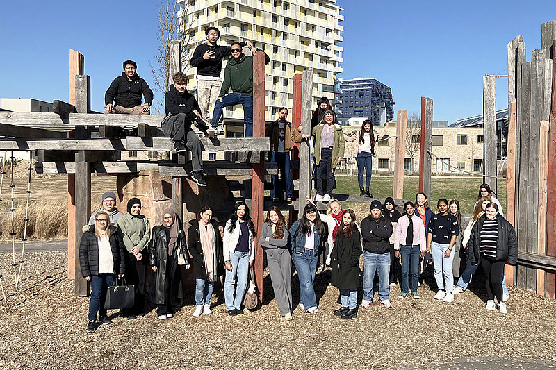 Die neue Abschlussklasse lässt sich auf dem Spielplatz hinter der UMM Akademie ablichten
