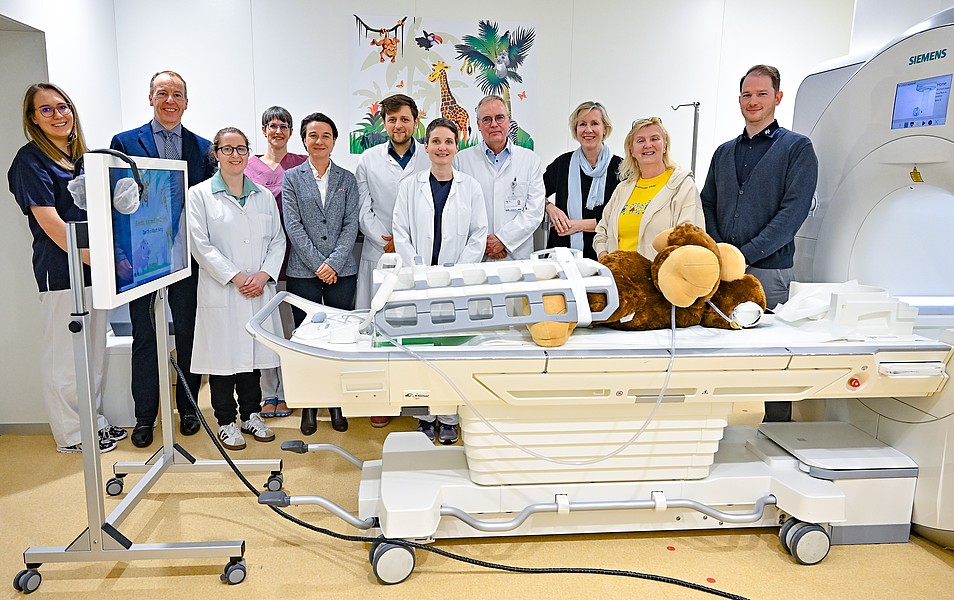 „Für ein Ganzkörper-MRT brauchen wir bei Kindern jetzt nur noch rund 30 Minuten”, erklärt Prof. Dr. Stefan Schönberg, Direktor der Klinik für Radiologie und Nuklearmedizin. Am Video-MRT, dem MRT-Standort mit der kürzesten Anbindung an die Kinderklinik und dem einzigen Gerät, an dem Kinder während der Untersuchung Filme schauen oder Hörbücher hören können, fehlte bislang genau diese Spule. Ganzkörper-MRT-Untersuchungen konnten dort daher nicht angeboten werden. Mit der neuen Becken-Bein-Spule ist dies nun möglich. Sie ist eine essenzielle Voraussetzung für Ganzkörper-MRT-Untersuchungen, die bei onkologisch erkrankten Kindern sowohl in der Initialdiagnostik als auch über Jahre hinweg in der Nachsorge notwendig sind.