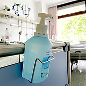 In jedem Patientenzimmer finden Sie Spender mit Hände-Desinfektionsmittel: