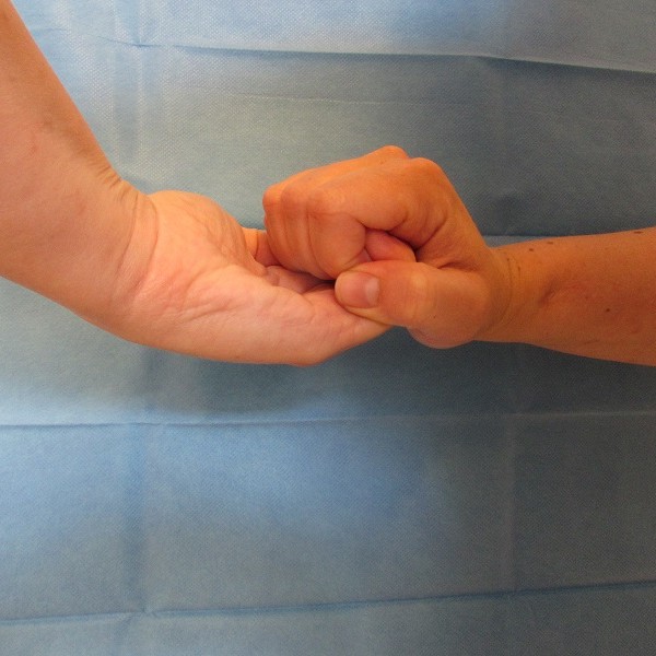 - Desinfektion der Daumen, Fingerkuppen, Nagelfalz und der Fingerzwischenräume wie folgt durchführen:
