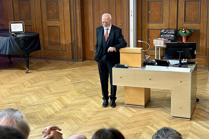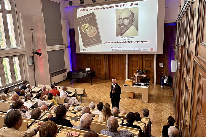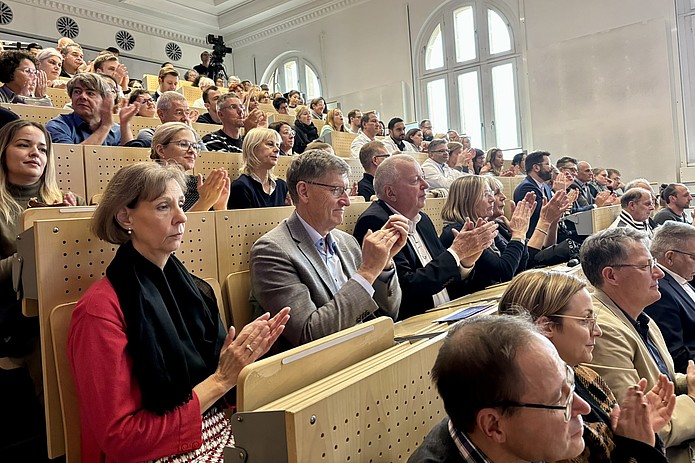Ein voll besetzter Hörsaal zeugte von der Anerkennung, die ihm persönlich sowie seinem herausragenden Engagement für die Klinische Chemie durch Kolleginnen und Kollegen, Studierende und Wegbegleiter entgegengebracht wird.