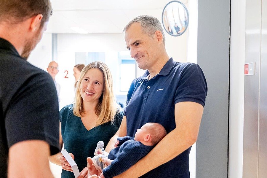 „Für uns Hebammen ist es etwas ganz Besonderes, die ersten Stunden eines neuen Lebens zu begleiten. Dass die Familien nun zusätzlich mit einem liebevollen Geschenk überrascht werden, das symbolisch die Verbundenheit mit unserer Stadt und der Region zeigt, macht diesen Moment noch schöner“, ergänzt Diana Haase. Die symbolische erste Babybodyübergabe an Familie Keller-Schneider mit Töchterchen Maila übernahm dabei unser Stürmer Tom Kühnhackl, der vor einem guten Jahr erstmals Vater geworden ist. „Die Freude über ein Kind ist mit nichts zu vergleichen. Im Moment der Geburt ist das Glück grenzenlos. Mit einem Schlag ändert sich aber auch das komplette Leben. Man macht ganz neue Erfahrungen, die man erst einmal verarbeiten muss. Es kommen viele neue Fragen und auch Unsicherheiten auf, die es zu bewältigen gilt. Da tut es gut zu wissen, dass man mit all dem nicht allein ist“, erinnert sich der 33-Jährige an die Anfangszeit zurück.