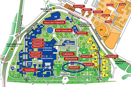 Hörsaal 01 bietet 151 Plätze und befindet sich in Haus 6, Ebene 4.