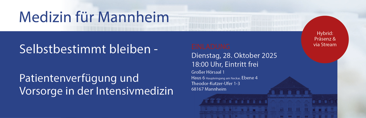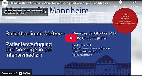 Medizin für Mannheim findet als Hybridveranstaltung gleichzeitig im Großen Hörsaal 01 in Haus 6 und als Live-Stream auf Youtube statt.